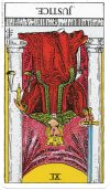 「偏見(へんけん)、公私混同(こうしこんどう)を表す「正義の逆位置」が今週のあなたのカードです。あなたと縁の深い火星は冥王星(めいおうせい)の影響を受け、上弦の月になる14日と17日には、身体(からだ)を酷使(こくし)しがちです。モラルに従(したが)うと良い時期です。バランス感覚(かんかく)を培(つちか)うことで、更に運気はアップします。」秘数9の人(9日、18日、27日生まれ)
