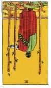 「未熟(みじゅく)、手抜(てぬ)きを表す「金貨の3の逆位置」が今週のあなたのカードです。あなたと縁の深い火星は現在、蟹座(かにざ)に在り、下弦の月になる22日には、気難(きむずか)しくなりがちです。粘(ねば)り強くあると良い時期です。急(いそ)がば回れの精神が、更に運気をアップさせます。」秘数9の人(9日、18日、27日生まれ)