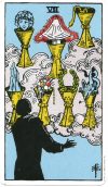 「妄想(もうそう)、虚栄心(きょえいしん)を表す「カップの7の正位置」が今週のあなたのカードです。このカードと縁の深い海王星は木星の影響(えいきょう)を受け、24日と28日には、自惚(うぬぼ)れは禁物(きんもつ)です。現実(げんじつ)を直視(ちょくし)すると良い時期です。選択肢(せんたくし)を絞(しぼ)ることで、更に運気はアップします。」秘数3の人(3日、12日、21日、30日生まれ)