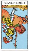 「短気(たんき)、強引(ごういん)さを表す「杖のナイトの逆位置」が今週のあなたのカードです。このカードと縁の深い火星は木星の影響を受け、上弦の月になる3日と8日には、浪費(ろうひ)に要注意(ようちゅうい)です。誠実(せいじつ)であると良い時期です。周囲(しゅうい)の信頼(しんらい)を得るための努力が、更に運気をアップさせます。」