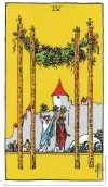 「門出(かどで)、豊かな実りを表す「杖の4の正位置」が今週のあなたのカードです。このカードと縁の深い火星は金星の影響を受け、19日と22日には、不摂生(ふせっせい)に要注意(ようちゅうい)です。寛大(かんだい)であると良い時期です。周囲(しゅうい)の人の幸せを祝福(しゅくふく)する気持ちが、更に運気をアップさせます。」秘数4の人(4日、13日、22.日、31日生まれ)