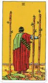 「未来志向(みらいしこう)、仕事への意欲(いよく)を表す「杖の3の正位置(せいいち)」が今週のあなたのカードです。このカードと縁の深い木星は現在、蟹座(かにざ)に在(あ)り、8月5日には、お節介(せっかい)は禁物(きんもつ)です。協力者が現(あらわ)れる幸運な時期です。過去(かこ)の経験(けいけん)を活(い)かす工夫(くふう)が、更に運気をアップさせます。」秘数3の人(3日、12日、21日、30日生まれ)