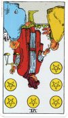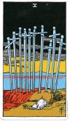 「終局(しゅうきょく)、計画の頓挫(とんざ)を表す「剣の10の正位置」が今週のあなたのカードです。あなたと縁の深い金星は他の惑星(わくせい)と意味ある角度を形成(けいせい)せず、6日には、孤立(こりつ)しがちです。人生の岐路(きろ)に立っている時期です。生まれ変わる気持ちで頑張(がんば)ることで、更に運気はアップします。」秘数7の人(7日、16日、25日生まれ)