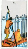 「旅立ち、困難(こんなん)からの脱出(だっしゅつ)を表す「剣(けん)の6の正位置」が今週のあなたのカードです。このカードと縁の深い水星は現在、乙女座に在(あ)り、17日には神経質な傾向(けいこう)です。次のステージに移行する幸運な時期です。発想を転換(てんかん)することで、更(さら)に運気はアップします。」
