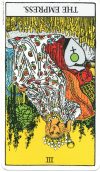 「怠惰(たいだ)、八方美人を表す「女帝の逆位置」が今週のあなたのカードです。このカードと縁の深い金星は火星の影響(えいきょう)を受け、下弦(かげん)の月になる14日と16日には、快楽主義に走りがちです。甘えを断ち切ると良い時期です。けじめのある生活を心掛(こころが)けることで、更に運気はアップします。」