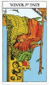 「ワンマン、横暴(おうぼう)さを表す「杖のキングの逆位置」が今週のあなたのカードです。このカードと縁の深い火星は水星と重なっており、10日と13日には、辛辣(しんらつ)になりがちです。冷静であると良い時期です。急がば回れの精神が、更に運気をアップさせます。」